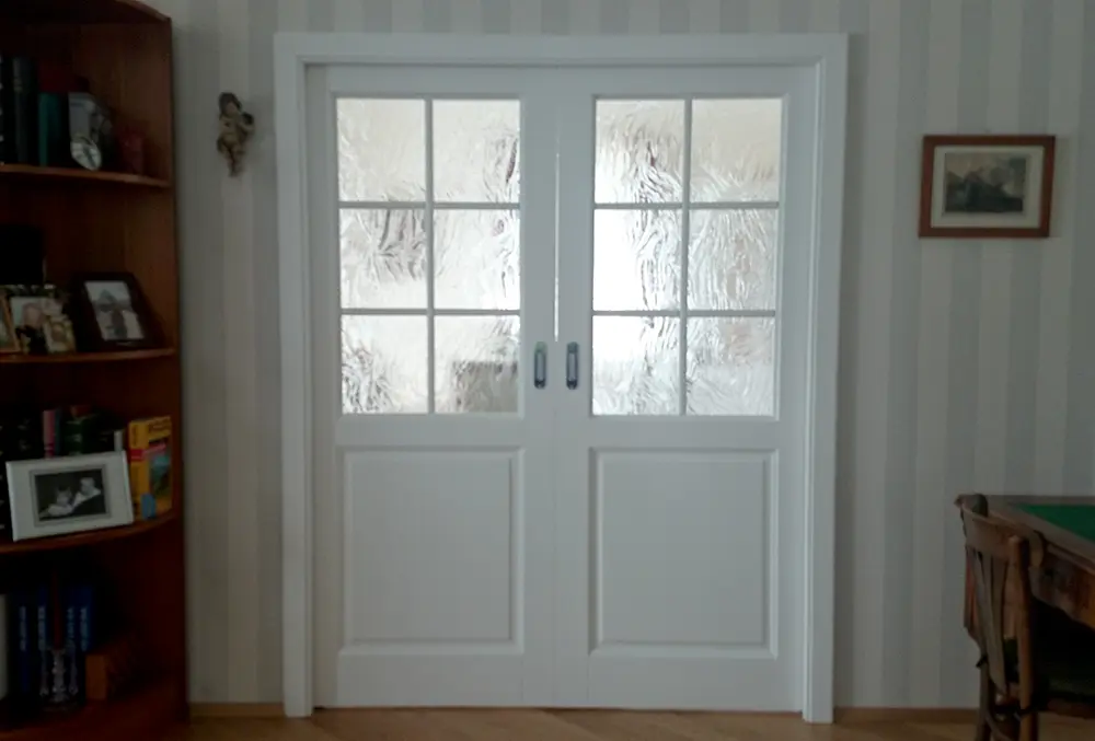Türfertigung nach eigenen Vorstellungen sowie Demontage und Montage werden von uns durchgeführt Schiebetüren vor der Wand oder in die Wand laufend, Sondergrößen, mehrflügelige Elemente Sonderformen wie Rund,- Segment oder Spitzbogen stellen kein Hindernis dar.
